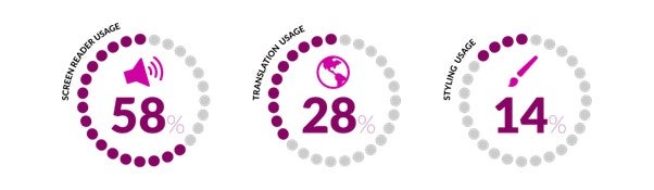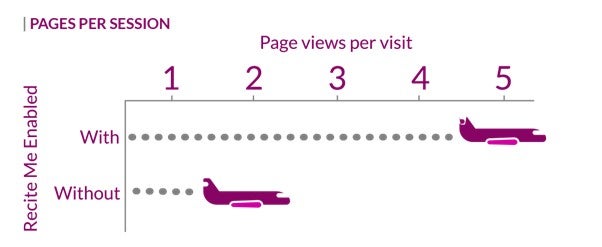Across a range of actions including checking flights times, researching access information, or booking parking or hotel stays etc., the breakdown on usage of Recite Me’s toolbar features is: